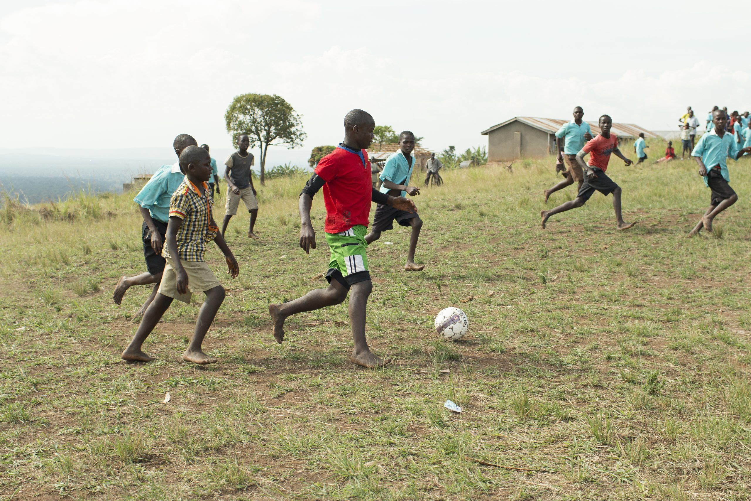 Jeg skal prøve at fortælle dig om den første fodboldkamp i byen. Målet er med klipklapper som stolper, som man kender det fra den bløde danske park. Også stopper sammenligningerne ellers der. For her er intet som det er derhjemme. Banen er en støvet mark. Vi spiller på mursten og mango kerner – helt seriøst. Det gør ondt. Men børnene mærker det ikke. På den ene baglinje står hele byen. Jubler hver gang jeg gør det mindste. Så laver lidt lækre tricks, selvfølgelig. Jeg er ikke professionel, men det må være sådan her det føles. Men spiller også de andre fri. Ingen holder igen. Sparker alt hvad de kan. Og de tuder aldrig. Ikke som i sfo’en. Skinneben mod skinneben. Videre. Træder på mursten. Videre. Træk til højre. Træk til venstre. Glidende takling. Saltomortale og curle på ansigt. Videre. Det er en fodboldkamp fra helvede jeg er en del af. Og spillerne er som et mytologisk mix af Ronaldinho og Graversen på coke. Jeg træder på mursten og græder indeni. Ved godt mzungu ikke må græde. Her handler det om styrke, og jeg har i sinde at vise det. Ingen svaghedstegn. Ikke på førstedagen.